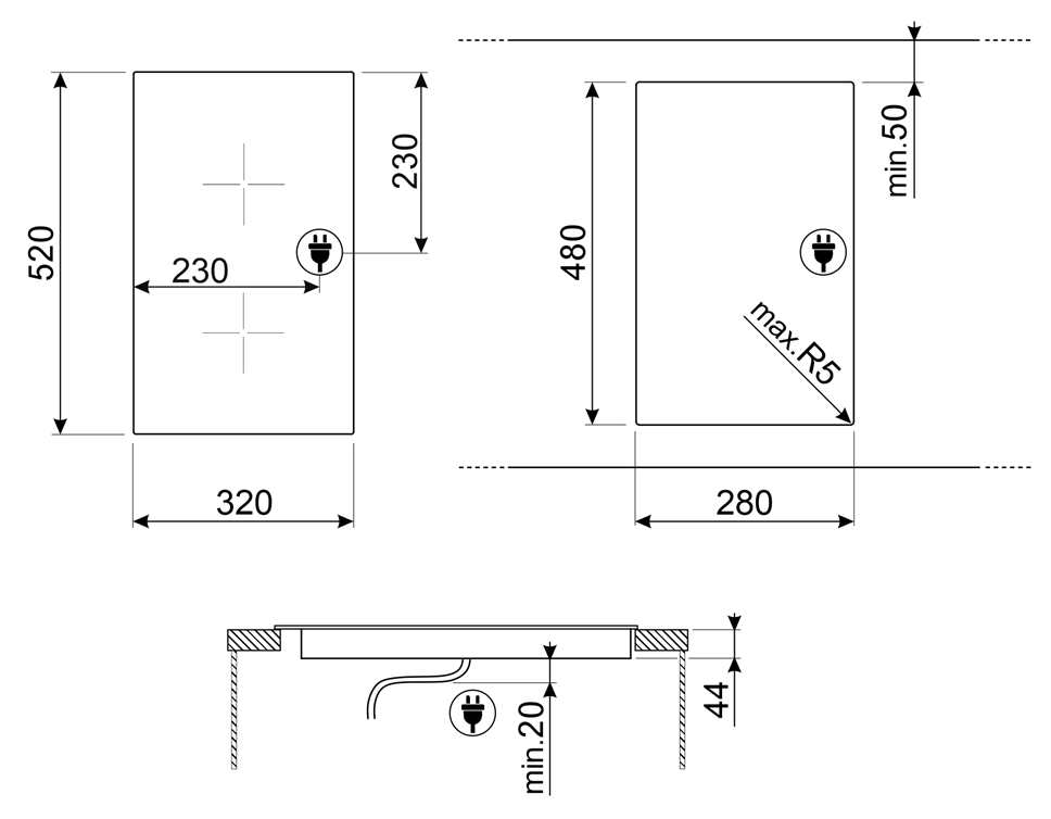 Размеры ниши для встраивания (ШхГхВ): 28 х 48 х 6,4 см.