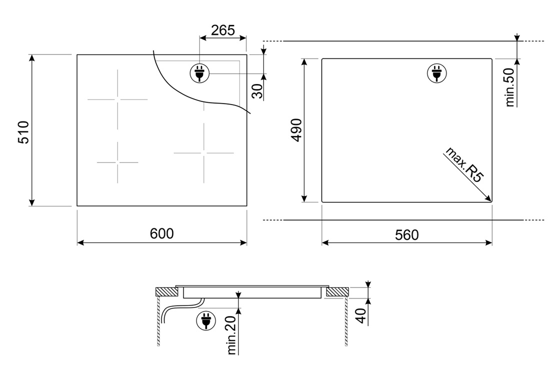 Размеры ниши для встраивания (ШхГхВ): 56 х 49 х 6 см.