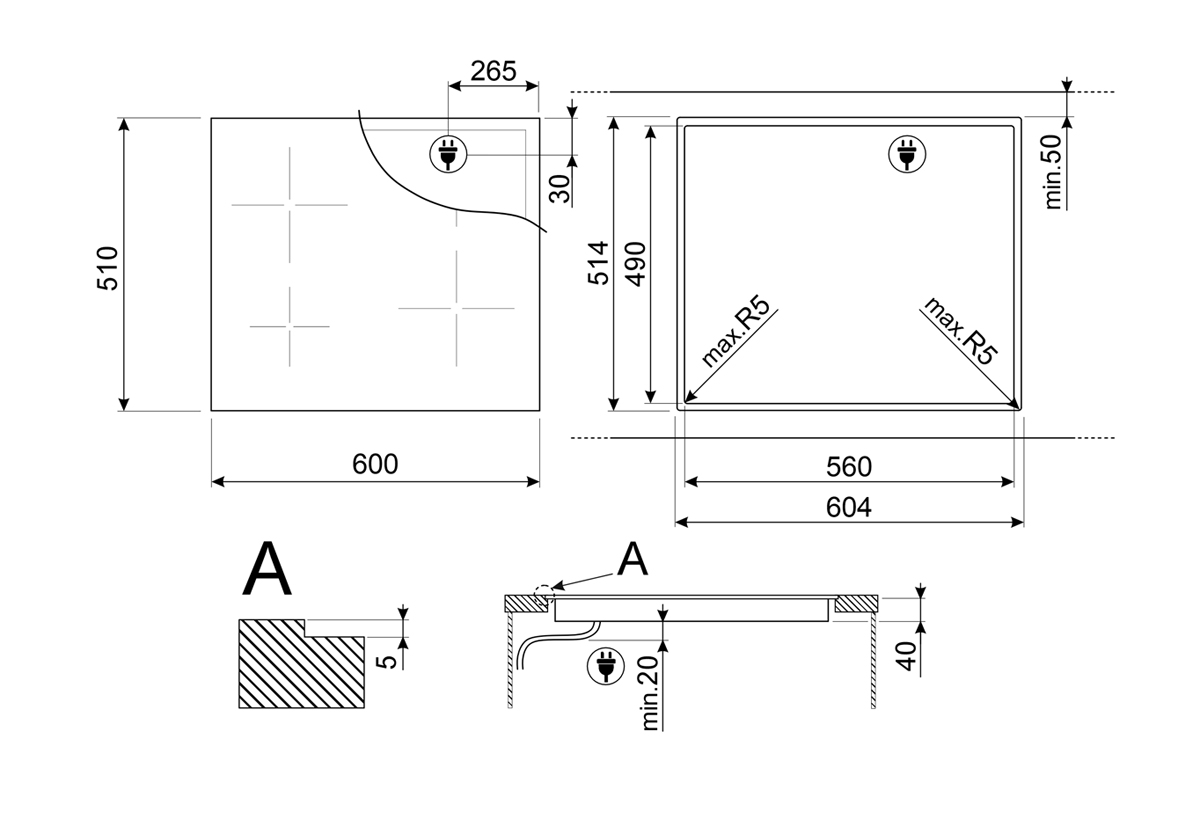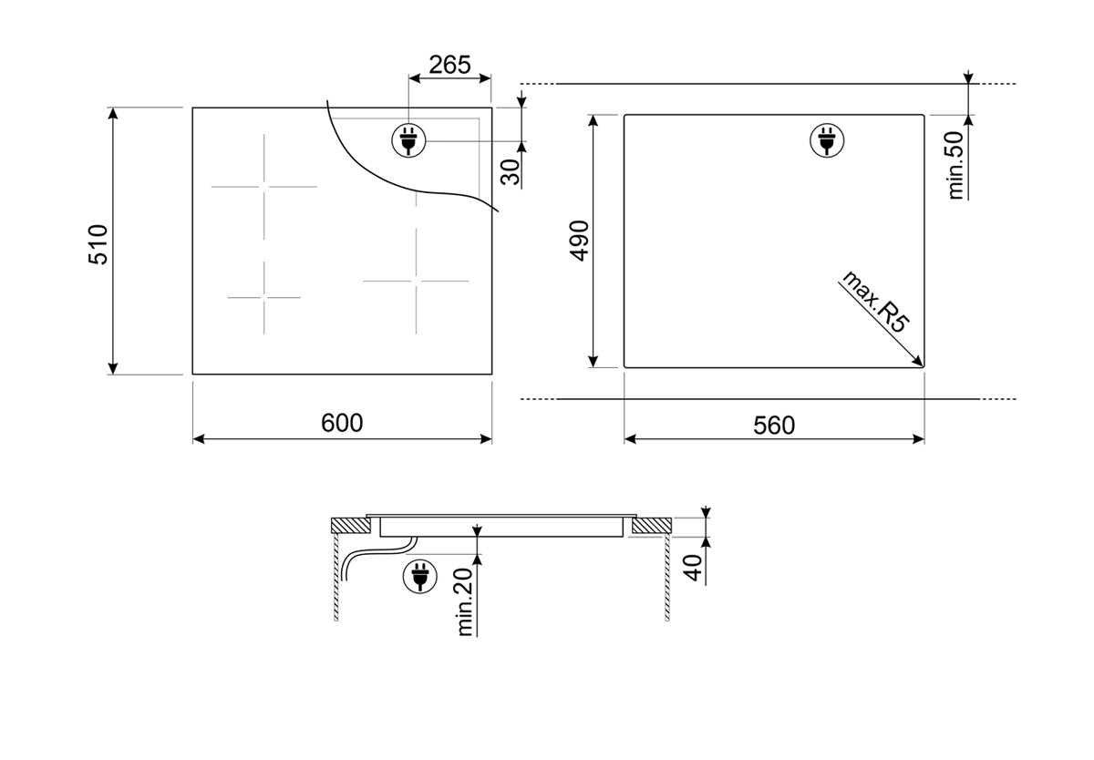 Размеры ниши для встраивания (ШхГхВ): 56 х 49 х 6