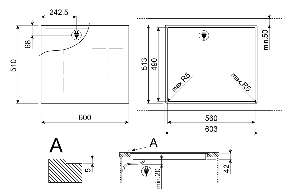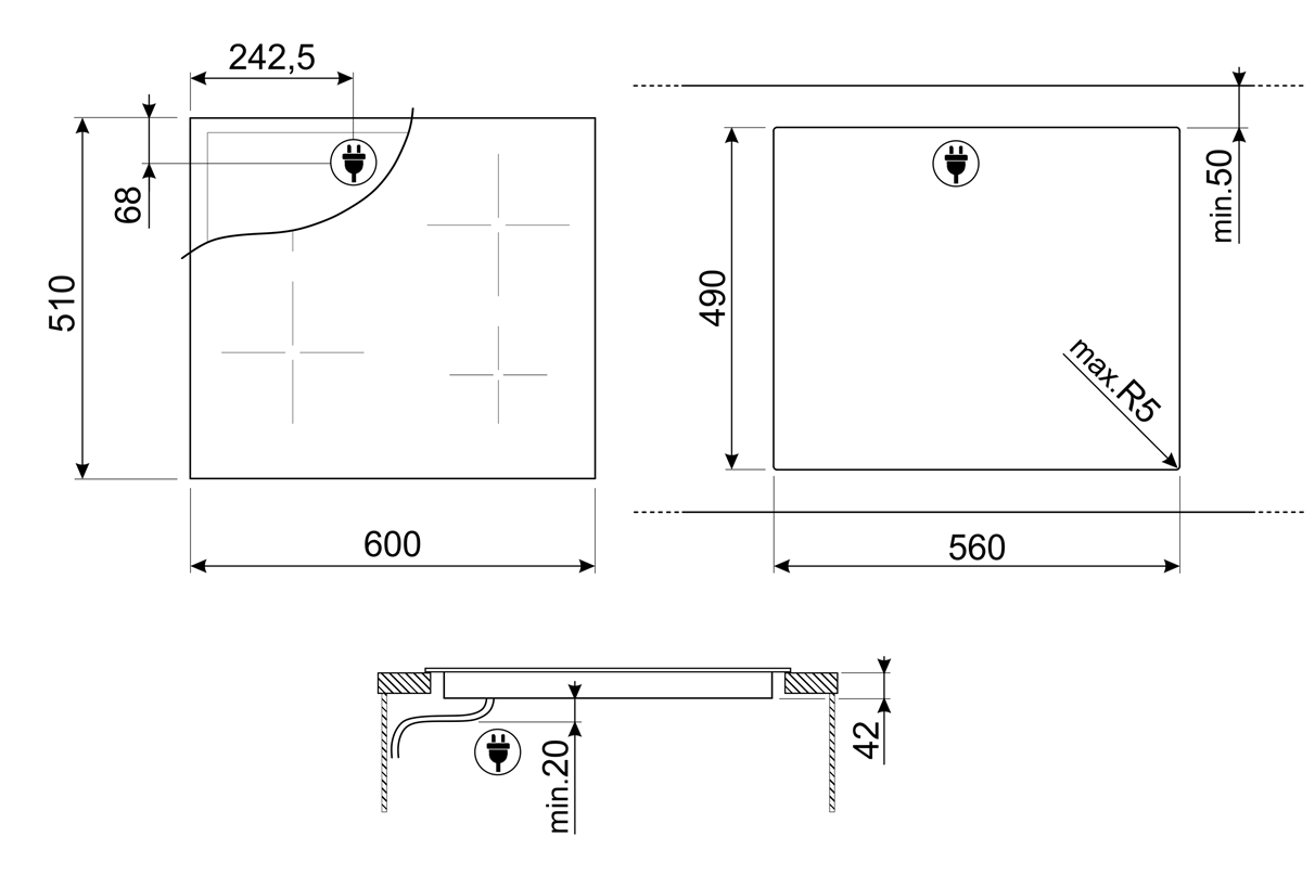 4 зоны нагрева Hi-Light: