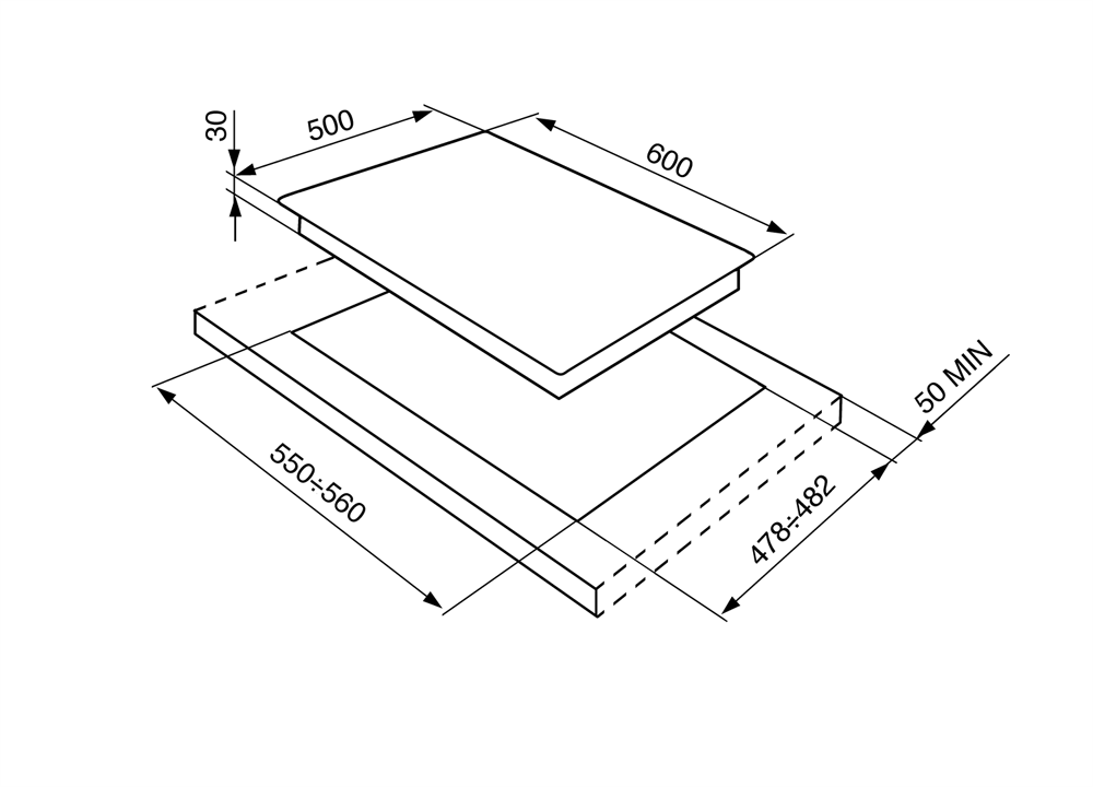 Размеры ниши для встривания (ШхГхВ): 55-56 х 47,8-48,2 х 5 см.
