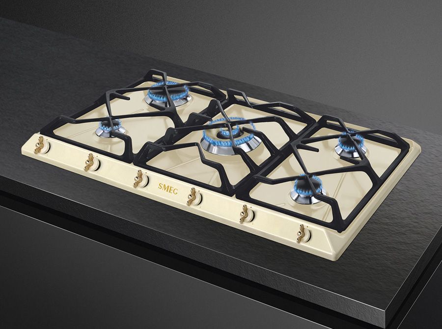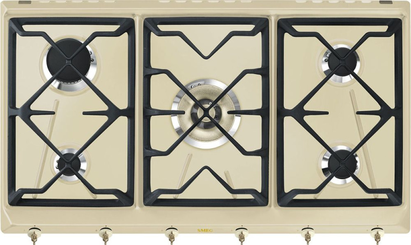 Зоны приготовления: 5 газовых горелок с автоматическим электроподжигом и газ-контролем. Левая фронтальная конфорка, вспомогательная (1,1 кВт); Левая задняя конфорка, быстрая (3,1 кВт); Центральная конфорка, ультрабыстрая/двойная (5 кВт); Правая фронтальная конфорка, полубыстрая (1,7 кВт); Правая задняя конфорка, полубыстрая (1,7 кВт).