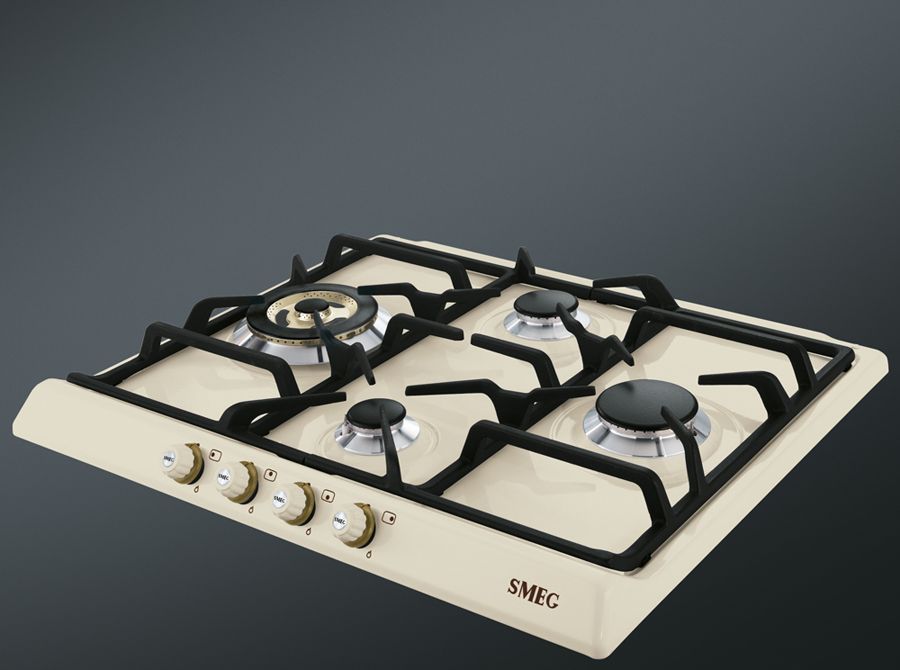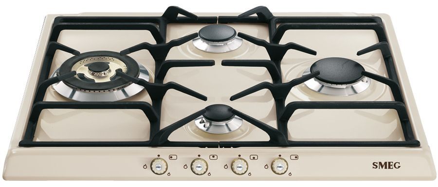 Эстетика: Цвет: кремовый; Эстетика: Cortina; Фурнитура: латунная; Материал корпуса: эмалированный; 4 фронтальных поворотных переключателя; Цвет переключателей: кремовый; Решетки: чугунные; Горелки: Smeg Contemporanea; Материал горелок: алюминий; Цвет сериографии: серый.