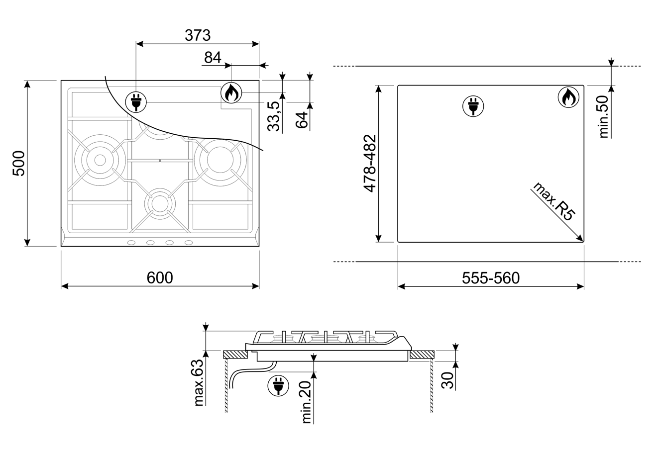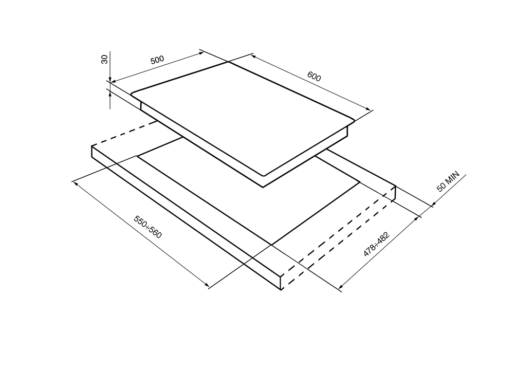 Размеры ниши для встривания (ШхГхВ): 55,5-56 х 47,8-48,2 х 5 см.