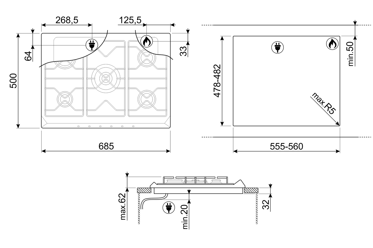 Размеры ниши для встривания (ШхГхВ): 55,5-56 х 47,8-48,2 х 5,2 см.