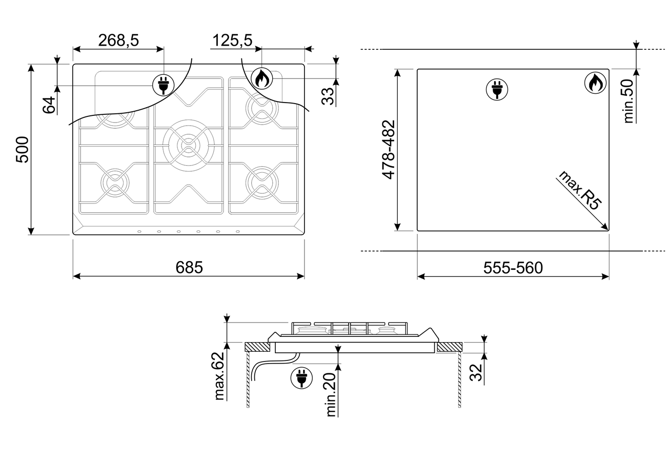 Размеры ниши для встривания (ШхГхВ): 55,5-56 х 47,8-48,2 х 5,2 см.