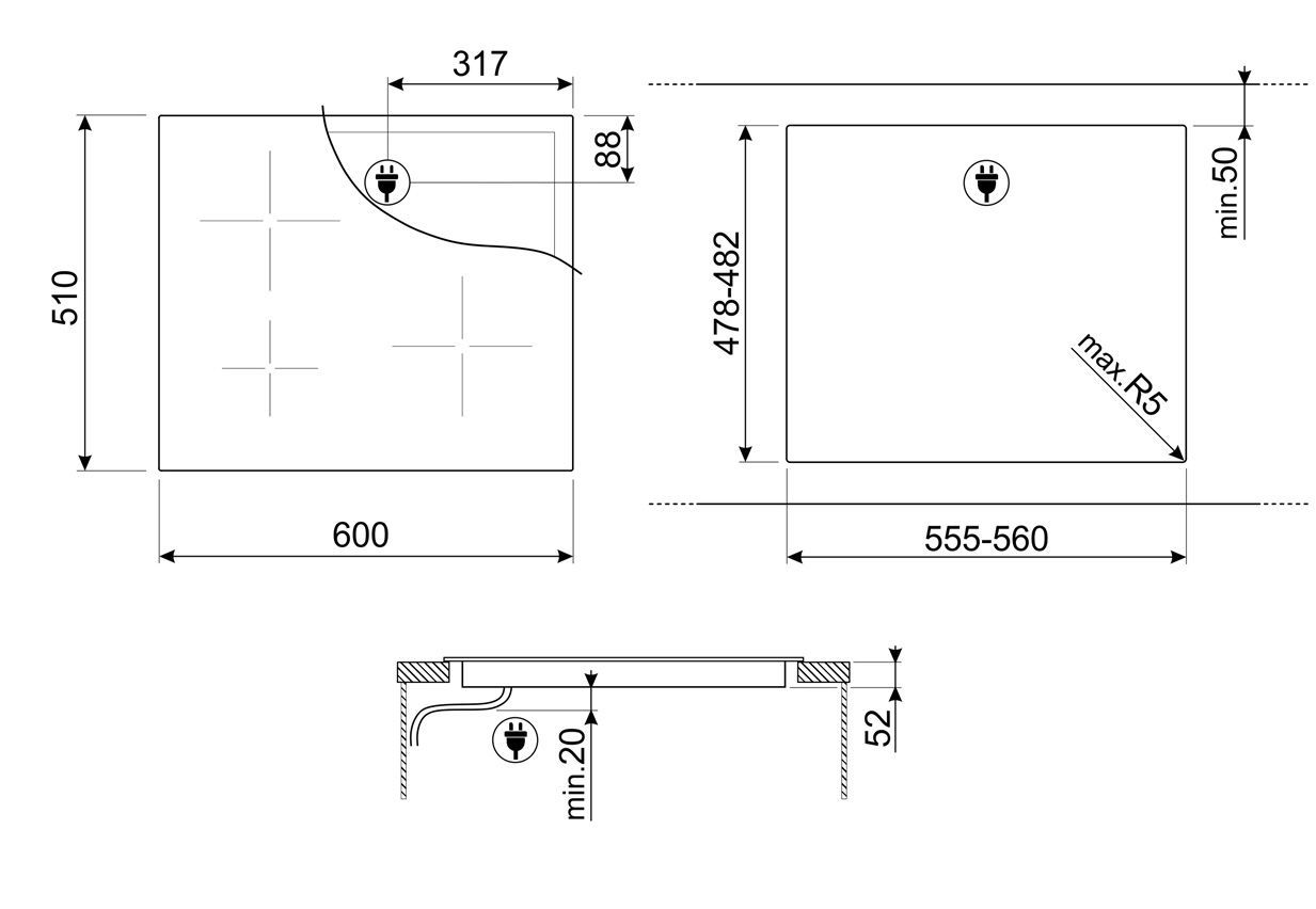 Технические характеристики: Автоматическое определение диаметра посуды; Автоматическое определение наличия посуды (минимум 9 см); Индикация минимального диаметра посуды; Автоматическое отключение при перегреве; Индикация остаточного тепла; Защита от случайного включения.