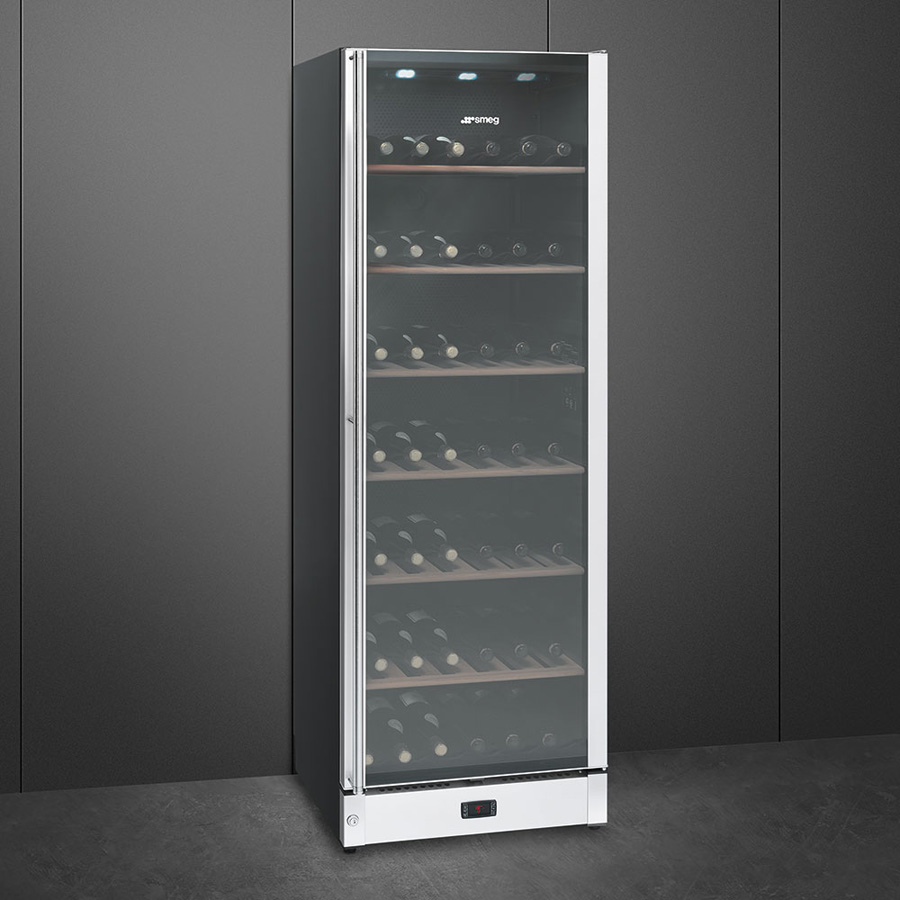 Одновременное хранение 115 бутылок по 0,75 л (198 бутылок с некоторыми снятыми полками)